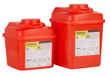 Wyrób przeznaczony do zbierania stałych, niebezpiecznych odpadów medycznych, np. igieł, kaniul dożylnych, strzykawek, rękawiczek jednorazowego użytku, itp.
