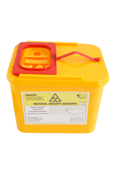 Oferujemy Państwu pojemnik na ostre odpady medyczne o pojemności 1,3L.
