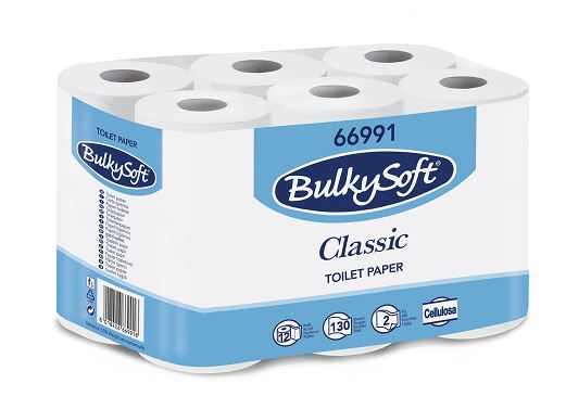 Bulkysoft Classic to papier toaletowy w konwencjonalnych rolkach, który jest idealnym produktem do codziennego stosowania dla osób oczekujących dobrej jakości, higieny i ekonomiczności. Papier o białym kolorze, który cechuje dwuwarstwowa budowa. Wykonany z czystej, selekcjonowanej celulozy, co zapewnia wyjątkową miękkość, wytrzymałość i przyjemność użytkowania. Bardzo chłonny. Jedna rolka zawiera w sobie 130 odcinków papieru toaletowego. Papier Bulkysoft Classic stanowi idealne rozwiązanie dla hoteli, w których konieczna jest wymiana rolek każdego dnia. Polecany także i dla innych odbiorców: barów, kawiarni itp. Opakowanie zbiorcze zawiera 96 rolek.