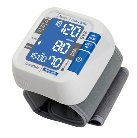 Stworzony na podstawie nowej technologii "MWI". Duży wyświetlacz ułatwia odczyt ciśnienia skurczowego, rozkurczowego oraz tętna po zakończeniu każdego pomiaru. Poziom ciśnienia powietrza w mankiecie jest programowany automatycznie, zgodnie z indywidualnym ciśnieniem skurczowym pacjenta. Ponadto wbudowana pamięć umożliwia przechowywanie maksymalnie 60 ostatnich wyników pomiarów co jest bardzo wygodne dla użytkownika, który chce regularnie kontrolować i obserwować swoje ciśnienie. Ciśnieniomierz nadgarstkowy TMA 200 jest mały i łatwy do przenoszenia co sprawia, że doskonale nadaje się do stosowania w domu i w podróży. Pomiary ciśnienia wykonywane tym aparatem są równorzędne z pomiarami wykonywanymi przez wykwalifikowanych pracowników służby zdrowia z użyciem tradycyjnego mankietu i stetoskopu metodą osłuchową. Pod warunkiem dokonywania pomiaru w odpowiedniej pozycji ciała i ręki. Ciśnieniomierz TMA 200 B jest chroniony programem gwarancyjnym obejmującym wady produkcyjne. Funkcja automatycznego wyłączania zmniejsza zużycie baterii.