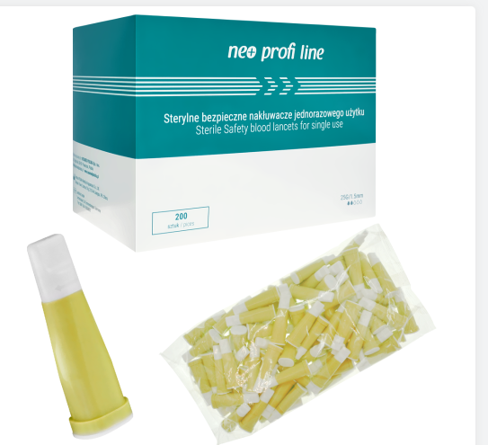 Nakłuwacz bezpieczny 30G 1,2mm SBL1A żólty NEO profi line, a`200szt
