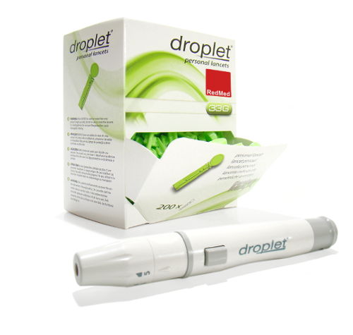 Automatyczny nakłuwacz DROPLET z regulowaną głębokością nakłucia jest używany do uzyskiwania próbek krwi kapilarnej. Jest łatwy w użyciu i zmniejsza odczucie dyskomfortu. Jest bardzo ważną częścią programu samodzielnego monitorowania poziomu glukozy we krwi.