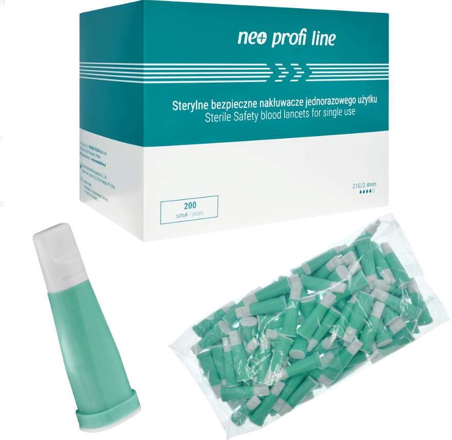 Nakłuwacze bezpieczny jednorazowy21G 2,4mm, 200 szt.