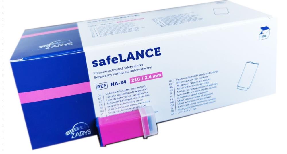 SafeLANCE nakłuwacze jednorazowe 21G (0,8mm) X 2,4 mm, bezpieczne, 100 szt.