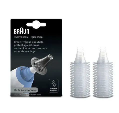 Kapturki ochronne są dopasowane do termometrów Braun i dokładnie zakrywają czujnik, w przeciwieństwie do produktów generycznych, które zaburzają prawidłową pracę czujnika temperatury. Szukaj na kapturkach logo Braun, aby mieć całkowitą pewność poprawnego wyniku pomiaru.
