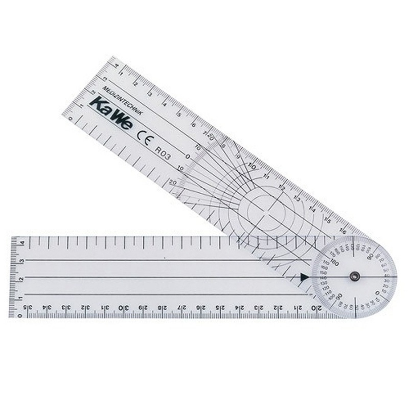 Goniometr służy do pomiaru zakresu ruchu w stawie. Posiada podziałkę od 0 do 360 stopni. Wykonany z wysokiej jakości przezroczystego plastiku. Dzięki goniometrowi możemy łatwo sprawdzić czy u pacjenta nie występują przykurcze i jaka jest ruchomość stawu. Używany jest np. do określenia zakresu ruchomości stawów pacjenta po długim unieruchomieniu i postępów w trakcie procesu rehabilitacji. Stosowany w gabinetach lekarskich, fizjoterapii, itp.