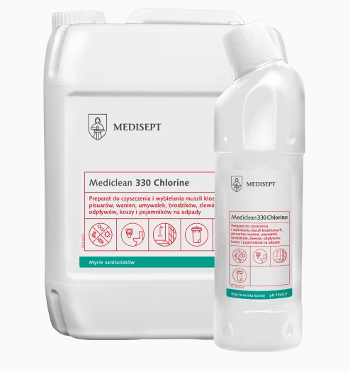 Urządzenia sanitarne - rozprowadzić preparat na powierzchni, spłukać wodą po 15 min. Pojemniki na odpady, kosze, duże powierzchnie sanitarne - stosować rozcieńczenie 100 ml na 10 l zimnej wody. Wcześniej wykonać próbę.