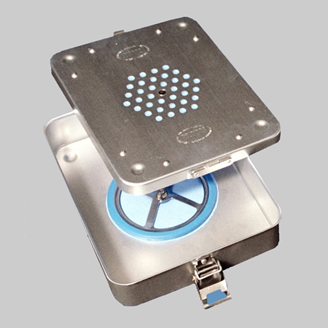 Kontener sterylizacyjny PS-45 przeznaczony jest do sterylizacji narzędzi i materiałów opatrunkowych w sterylizatorach parowych oraz do sterylnego przechowywania wysterylizowanego wkładu. Pomiędzy perforowanymi ściankami puszki sterylizacyjnej a osłoną, umieszczony jest filtr wykonany z papieru sterylizacyjnego. Ma on za zadanie przepuścić parę sterylizującą do wnętrza puszki. Filtr papierowy jest jednorazowego użytku. Filtr oraz zastosowana specjalna uszczelka pomiędzy pokrywą a wanną dodatkowo zabezpiecza przed wniknięciem drobnoustrojów do wnętrza sterylizatora.