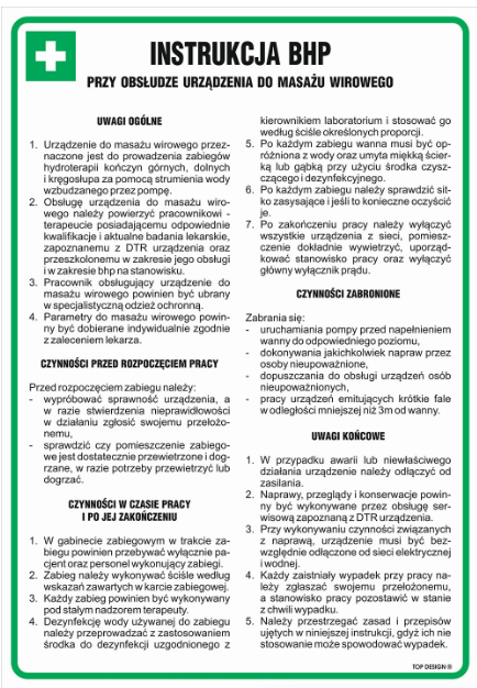 Instrukcja BHP przy obsłudze urządzenia do masażu wirowego