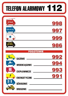 Tabliczka telefonów alarmowych