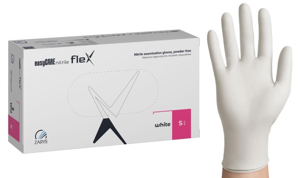 Rękawice diagnostyczne easyCARE nitrile_flex_nitrylowe_bezpudrowe_niesterylne_biały_Rozm_S_A100