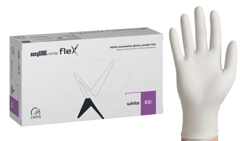 Rękawice diagnostyczne easyCARE nitrile_flex_nitrylowe_bezpudrowe_niesterylne_biały_Rozm_XS_A100