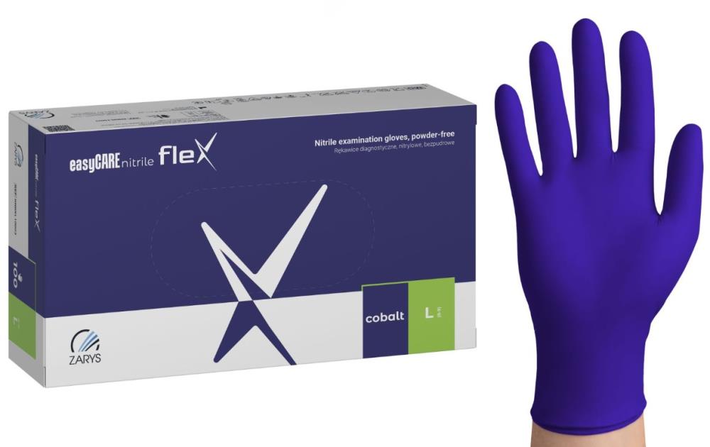 Rękawice diagnostyczne easyCARE nitrile_flex_nitrylowe_bezpudrowe_niesterylne_kobaltowe_Rozm_L_A100