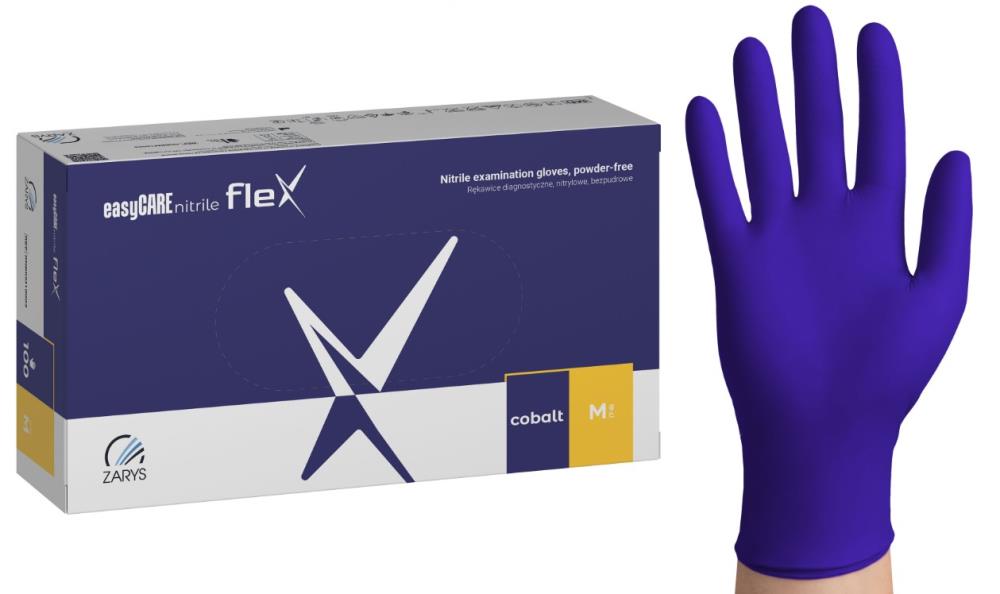 Rękawice diagnostyczne easyCARE nitrile_flex_nitrylowe_bezpudrowe_niesterylne_kobaltowe_Rozm_M_A100