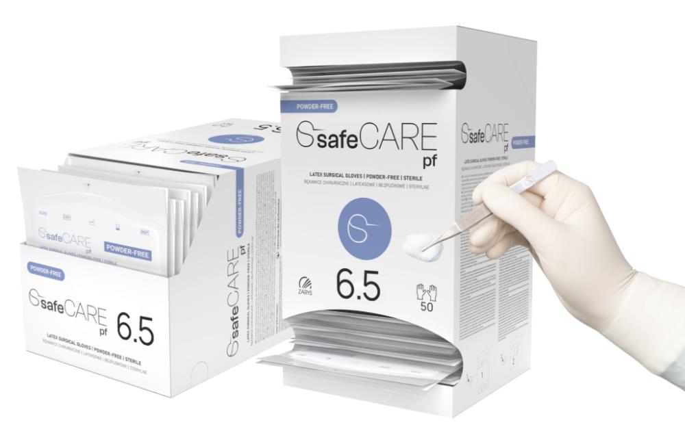 SAFE CARE Rękawice chirurgiczne lateksowe PF rozm. 6,5 1 para.